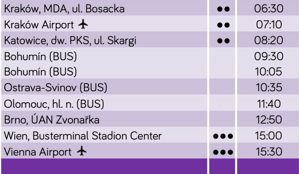 W kierunku Wiednia natomiast odjazd autobusu z Krakowa jest o godzinie 6:30. Szczegółowy opis relacji poniżej.