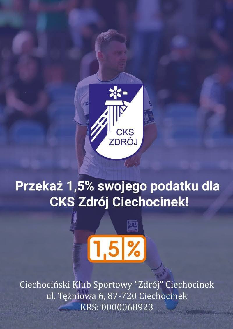 Aby przekazać 1,5% podatku na Ciechociński Klub Sportowy Zdrój, w formularzu PIT: