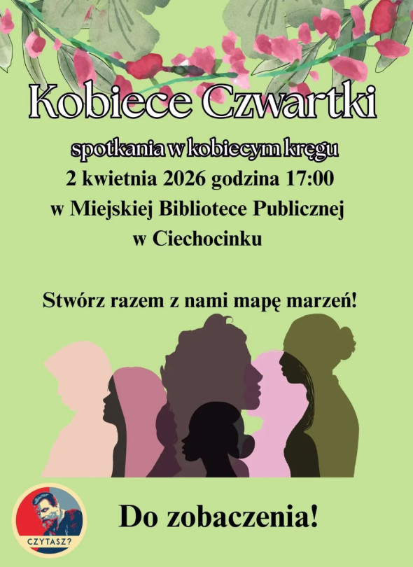 Miejska Biblioteka Publiczna w Ciechocinku zaprasza wszystkie Panie na kolejne spotkanie z cyklu Kobiece Czwartki! Już w najbliższy czwartek o godz. 17:00 spotkamy się w kobiecym kręgu, aby wspólnie stworzyć Mapę Marzeń – wyjątkową przestrzeń na Wasze pragnienia, cele i intuicję.
