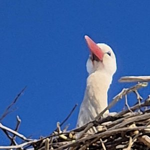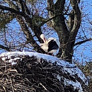 Pan Zbigniew: „Pod gniazdem zostawiłem tylko wodę, myślę, że tam już nie ma co przynosić. Robi się coraz cieplej, będą sobie radzić.”