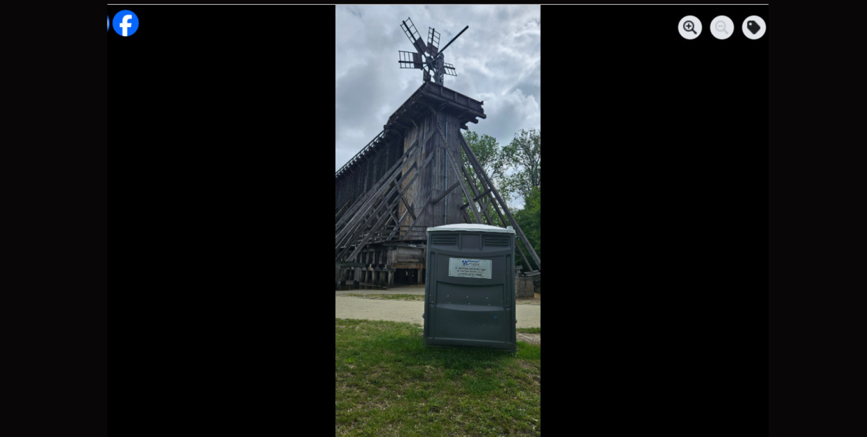 Zdjęcie plastikowej toalety na tle zabytkowej konstrukcji wywołało poruszenie w mediach społecznościowych.